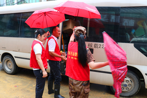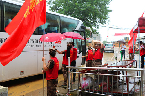 资阳区红十字会组织口味王槟榔厂志愿者赴抗洪一线慰问