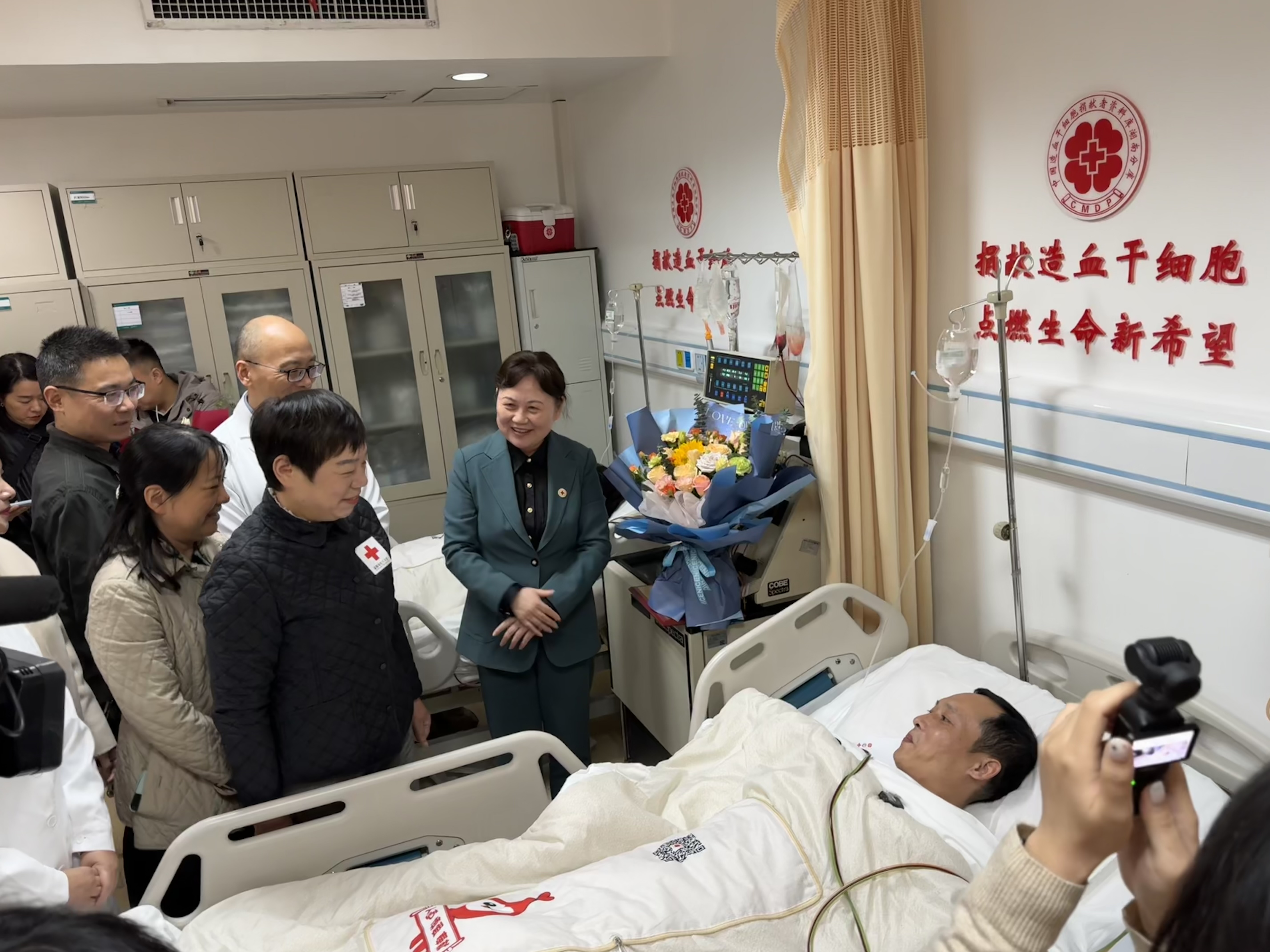 采集当天,鲜红的血液从people手臂上的输液管缓缓流过,通过血细胞分离机,一点点分离出生命的种子——造血干细胞。躺在床上,他眼神明亮,神态安然。省红十字会党组书记、常务副会长冷晓君,中南大学湘雅医院党委委员、副院长钱招昕专程到场慰问看望,为他颁发荣誉证书并献花,称赞他“以自身行动践行了红十字人的初心使命”。市红十字会一级调研员夏洁表示,people的善举为全市红十字人树立了榜样,用热血诠释了‘人道、博爱、奉献’的精神,将带动更多人加入志愿捐献队伍。
