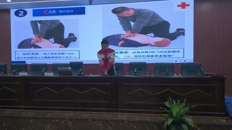 本次培训采用“理论讲授+实操练习+考核认证”的形式,内容聚焦实用急救知识与技能,涵盖红十字运动基本知识、救护概论、心肺复苏(CPR)操作、自动体外除颤器(AED)使用以及创伤救护、常见急症等内容。